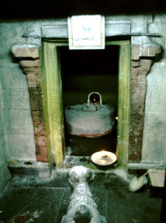 Having cast away all his worldly possesions, Ramana now had fully renounced the world. He initially resided in the great temple at Tiruvanamalai, where he spent days in meditation. For some time, he even shifted to an underground vault known as the Patala Lingam, where he spent days together undisturbed. After some time, he was shifted to a nearby shrine of Subramanya, where some one or other took care of him. 6 months later, Ramana shifted his residence to a place called Gurumurtam, on the request of the temple’s keeper. It was around this time, more and more people began to flock to him, as his fame increased. Later he shifted to a nearby mango orchard, when he was traced out by his uncle Neliyappa Aiyar. Ramana however refused to go back home and his uncle returned disappointed.